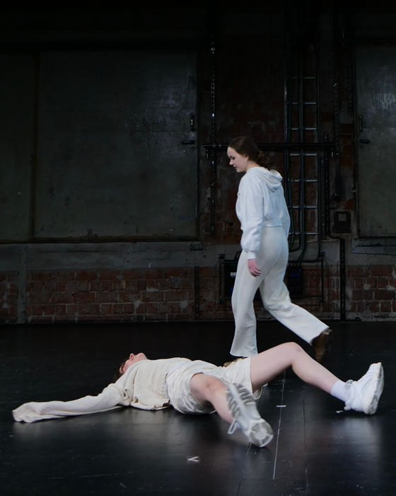 Und andererseits sind im Laufe der Recherche und der Proben ausführliche Regieanweisungen entstanden, die jede neue Szene einführen und mit Kontext, Vorahnungen und Spannung aufladen. Die Szenen sind dabei alle gedacht als Übungen – hier wird in einer vor-faschistischen Zeit Gewalt (aus)geübt. Noch scheint sie diffus und privat. Noch: „Mittlerweile auf den Straßen schon längst die Schlägertrupps. Mittlerweile ist irgendwie immer was los. Eine Langeweile kommt auf im Wohnzimmer. Ja, es muss sie doch langweilen. Wie eine Angewohnheit geht es weiter, eine Übung für den Ernstfall.“